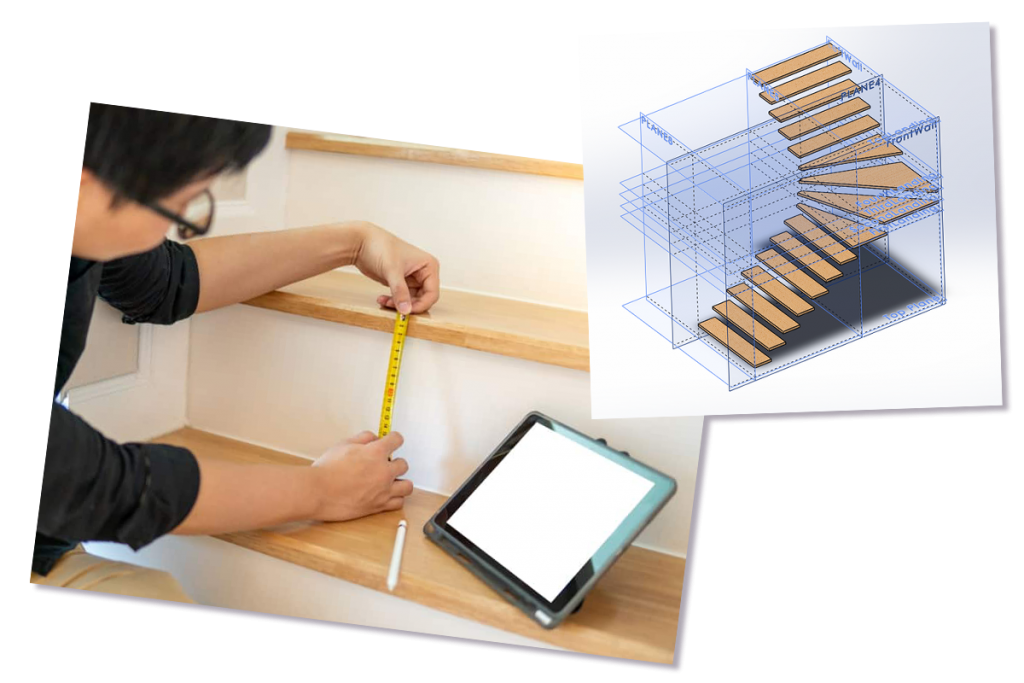 Σε αυτή την περίπτωση πριν η χειροποίητη σκάλα σας ξεκινήσει να φτιάχνεται ένας εξειδικευμένος τεχνικός μας θα πραγματοποιήσει τις απαραίτητες μετρήσεις καθώς και θα την αναπαραστήσει με αυτές σε τρισδιάστατο σχέδιο.